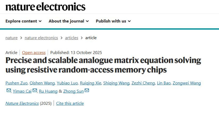 今日上海股票配资,北京大学人工智能研究院孙仲研究员团队及合作者在国际学术期刊NatureElectronics杂志发表了题为Preciseandscalableanaloguematrixequationsolvingusingresistiverandom-accessmemorychips的论文,在新型计算架构上取得重大突破。