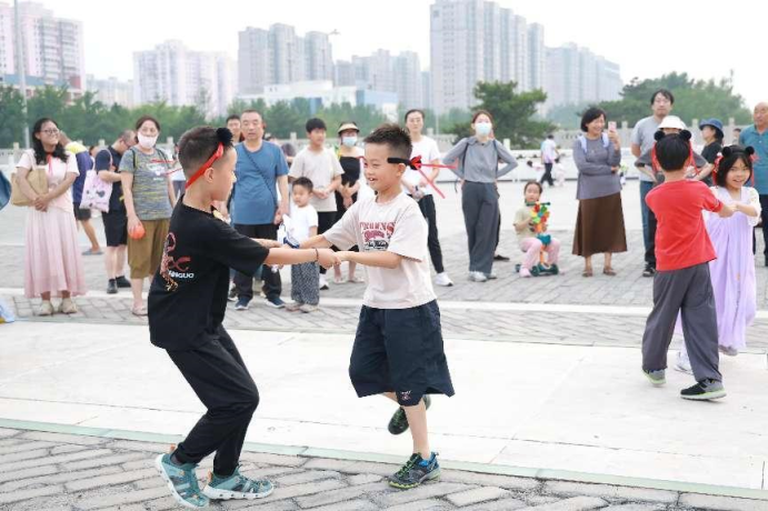 6月28日、29日,20多名少年儿童穿戴上心心念念的各样“小哪吒”服饰,在永定门南广场和前门箭楼前,再现北京中轴线传说中的“八臂哪吒城”和“十五的兔儿爷上前门”经典场景。国家级非遗北京泥人张项目市级代表性传承人姚晓静和盛锡福皮帽制作技艺国家级代表性传承人李金善徒弟赵雪一起参加活动,展示传说中非遗技艺的魅力。