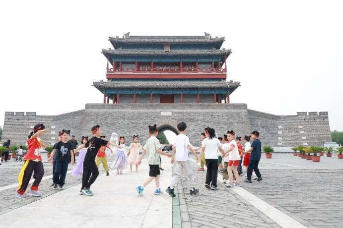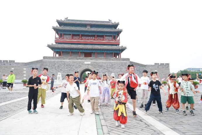 在多位国家级编导带领下,“小哪吒”们一起再现“八臂哪吒城”情景,生动形象地融入到对北京中轴线传说的体验之中。