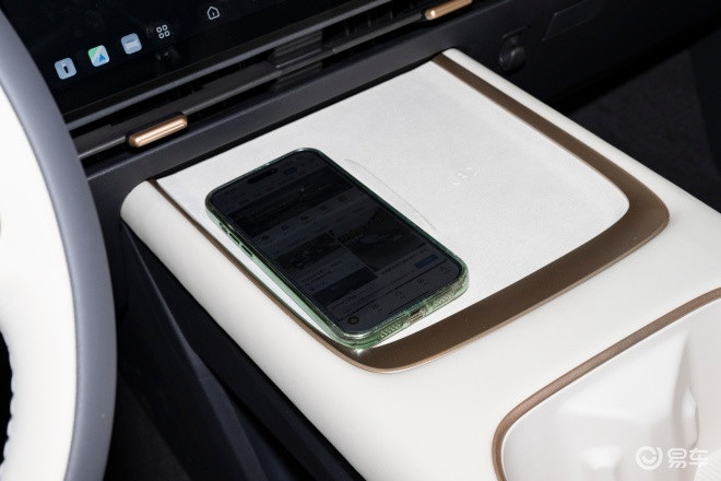 同时,新车还提供了用于安装手机支架的扩展接口。副仪表台提供了带通风功能的手机无线充电面板,后方为杯架和中央扶手箱。